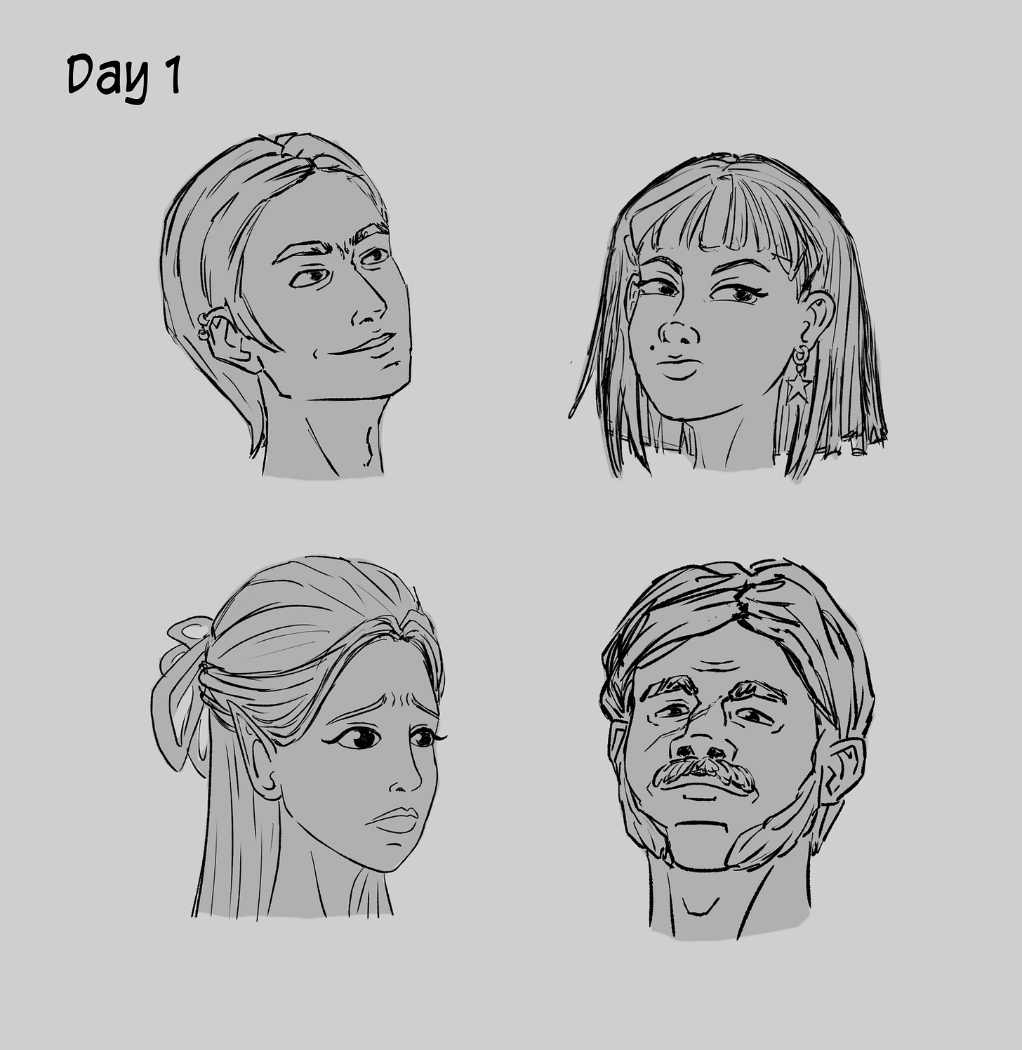 For myself, I decided to draw four different characters with unique traits to practice drawing something else besides the same-faced pretty girls (no matter how tempting it was 😁).